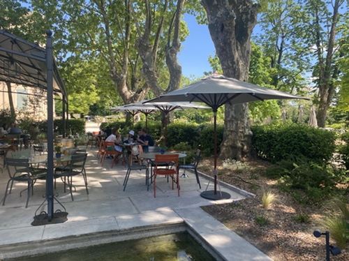 We made up for the excitement of the Fête by lunching at Bistro de Montcaud on Sunday. The ambience, service, and cuisine are all first rate. This is an old estate outside of Bagnols, and it has been renovated to become a hotel and restaurant. Good for romance, families, and feeling good.