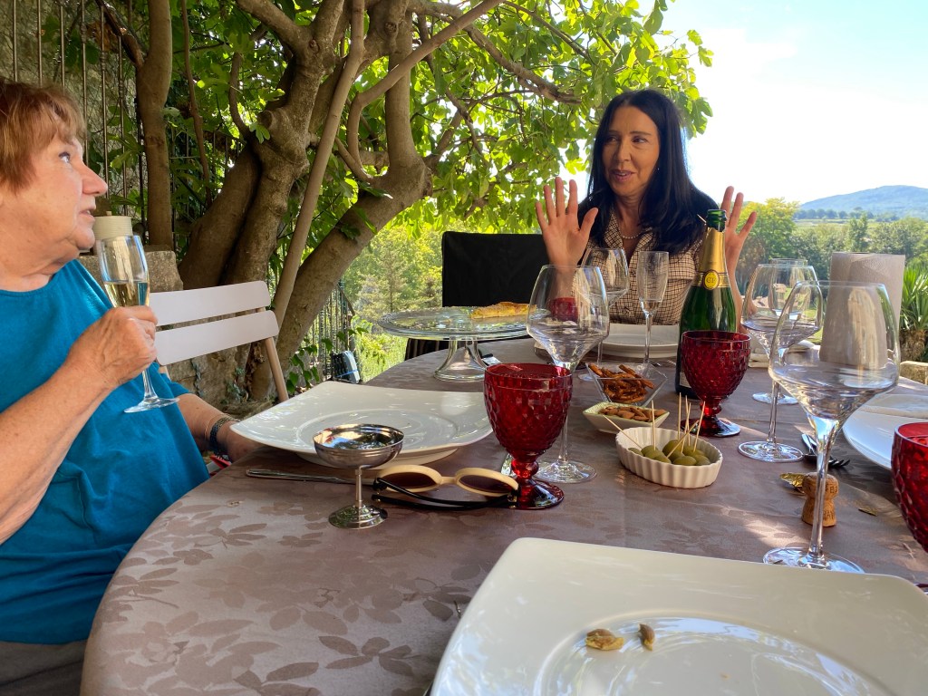 Patrizia puts on a great spread for a lunch al fresco. I didn’t know that the little silver cup was for olive pits. Patrizia was amazed.