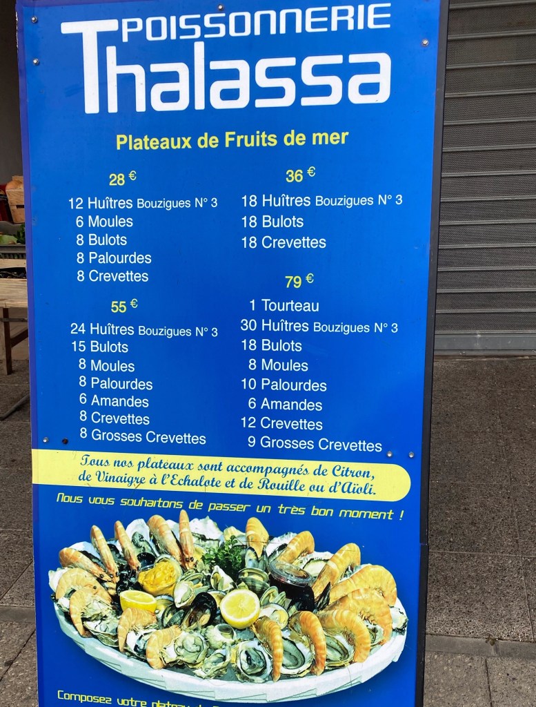 Since it’s a seaside village, there are oodles of seafood shops, offering fantastic selections of bounty at reasonable p4ices.