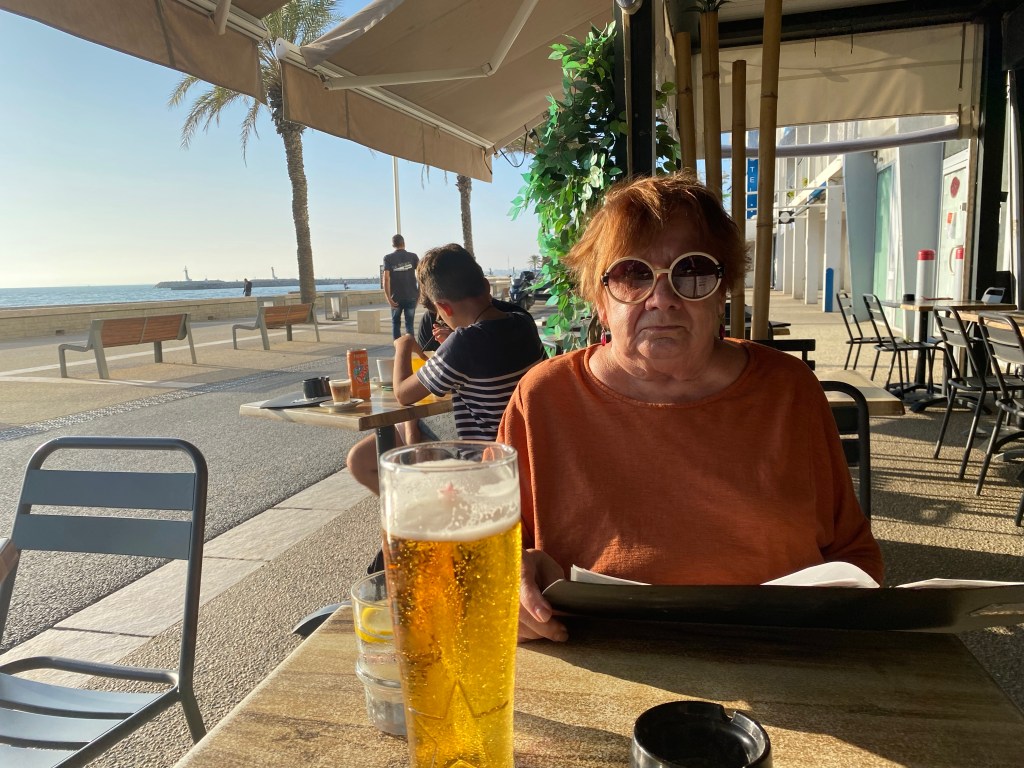 Both were pretty splendid, especially on the cusp of low season. Later during the first afternoon, we ventured to the local Brasserie for a pre-dinner libation. It was sunny and warm, so I opted for a draft beer.