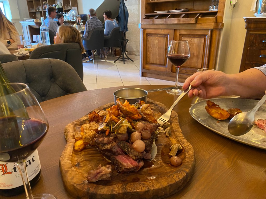That’s today. We opted to visit Grain de Soleil in Goudargues again, for what turned out to be a three hour lunch. Judy cannot resist a French chat (talk, not cat) and she is pretty good at it.