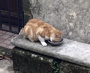 I asked about Maurice, the little ginger tabby who has greeted and mooched for the last few years. “Il est disparu”.