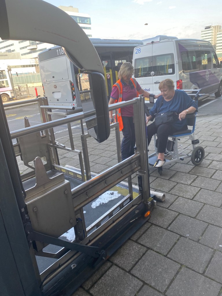 After a layover in the lounge, we were escorted to the gate to board the Marseille flight. It required hopping on a bus to be transported across the tarmac and then climb the stairs to the plane. Not a chance. Once again, we rode the maintenance lift to be escorted to the back door of the plane, along with a lady who had a vacation accident and was crutch dependent.