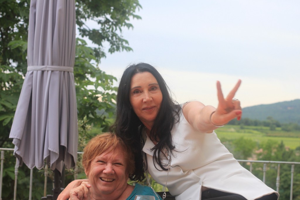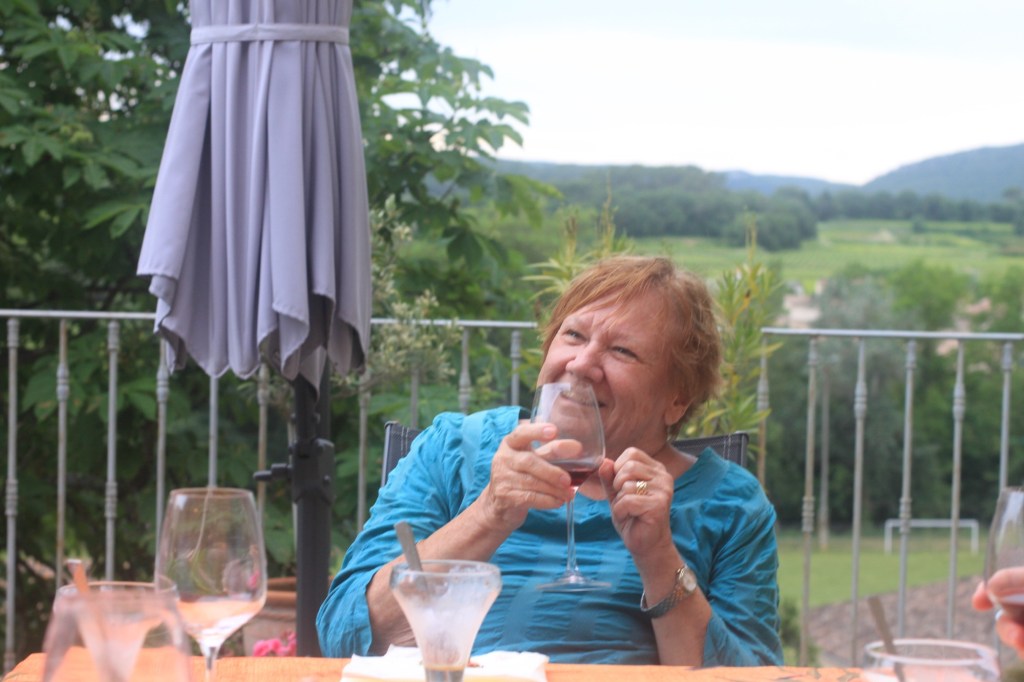 As the sun set in the west, as usual, everyone soaked up the view of the surrounding vineyards and hills. Le paradis, c’est ici!
